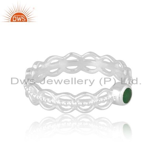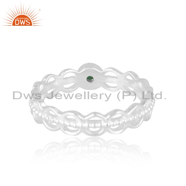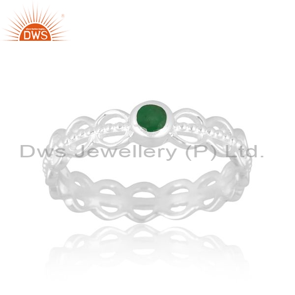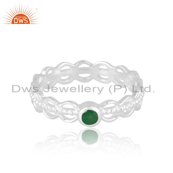 925 Sterling Silver White Ring With Emerald Round Cut Stone