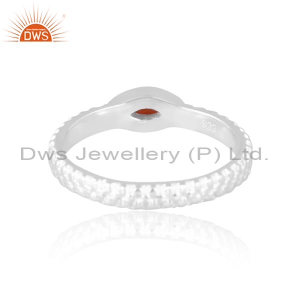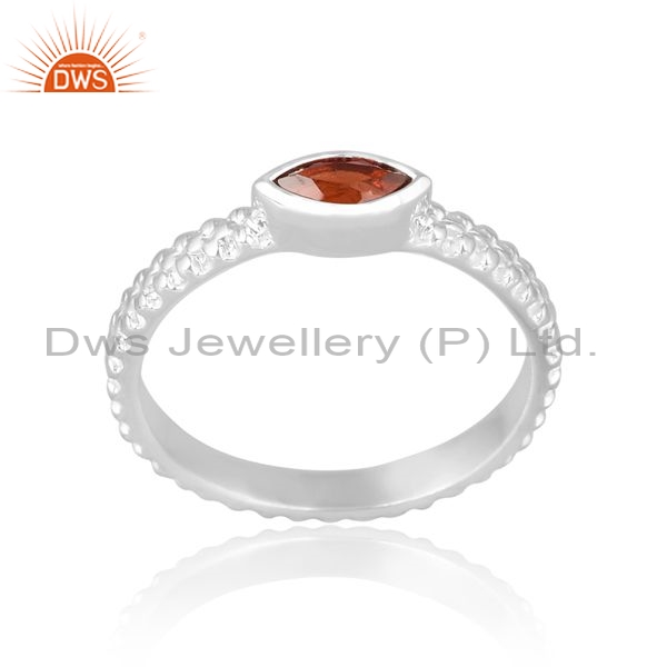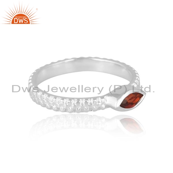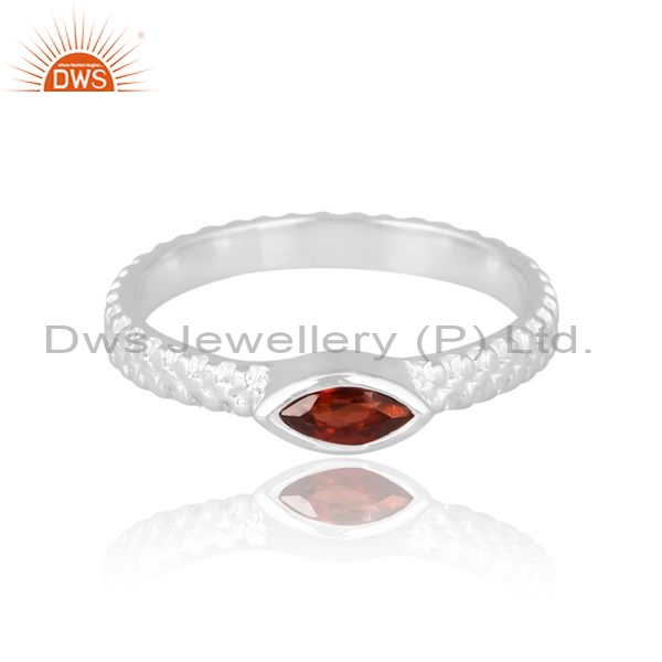925 Sterling Silver White Ring With Garnet Marquise Cut