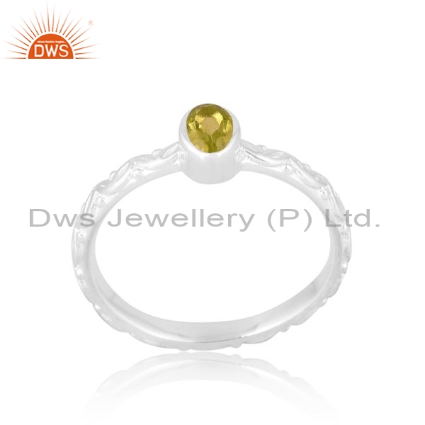 925 Sterling Silver White Ring With Peridot Oval Cut Stone