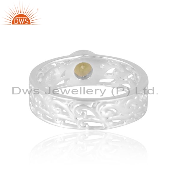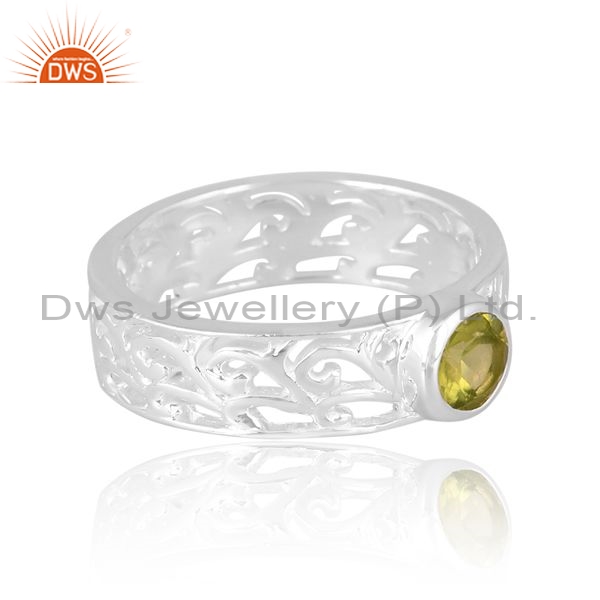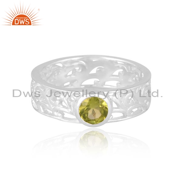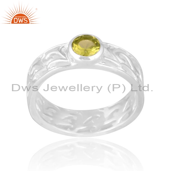 925 Sterling Silver White Ring With Peridot Round Cut Stone