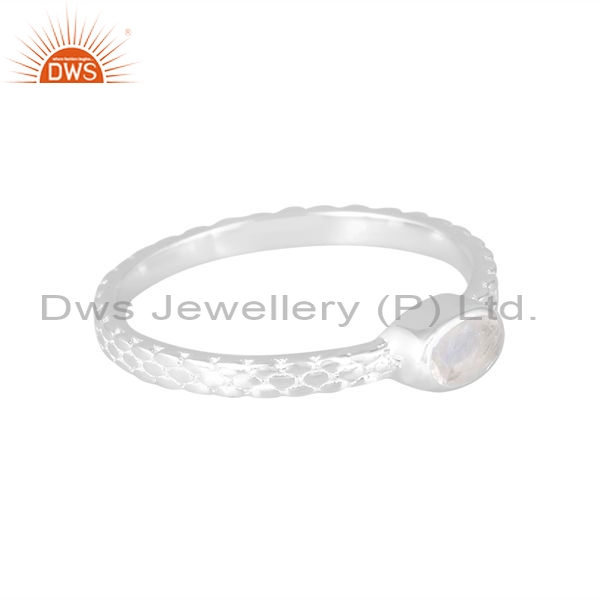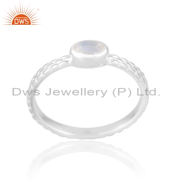 925 Sterling Silver White Ring With Rainbow Moonstone Oval Cut