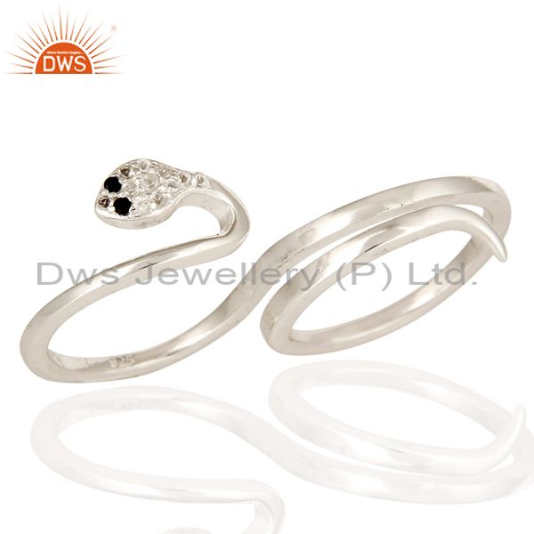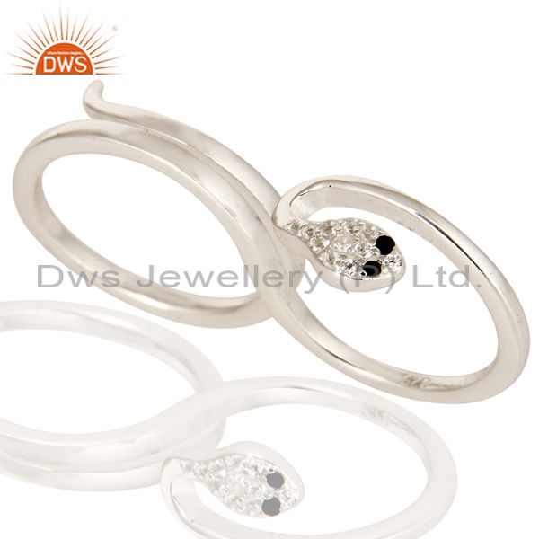 925 Sterling Silver White Topaz And Black Spinel Snake 2 Finger Adjustable Ring