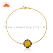 925 Sterling Silver Yellow Gold Flashed Prong Set Natural Yellow Moonstone Ring