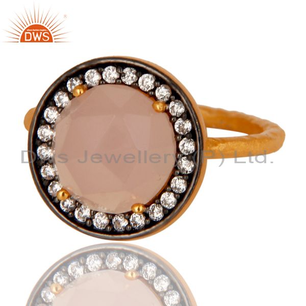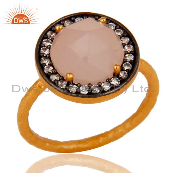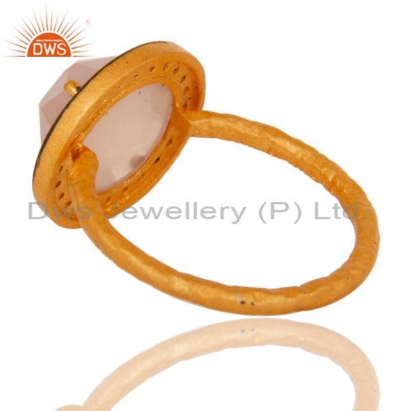 925 Sterling Silver Yellow Gold Flashed Prong Set Rose Chalcedony Ring