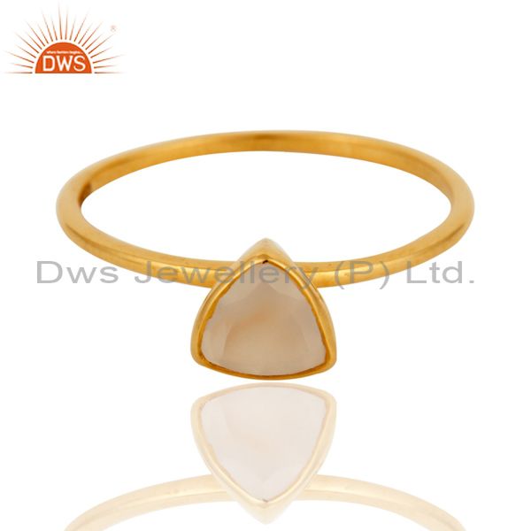 9K Solid Gold Natural White Agate Handmade Engagement Stacking Ring Gift For Her