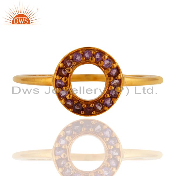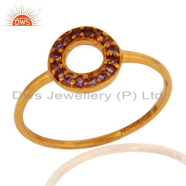 9K Solid Rose Gold Pave Set Amethyst Gemstone Open Circle Ring