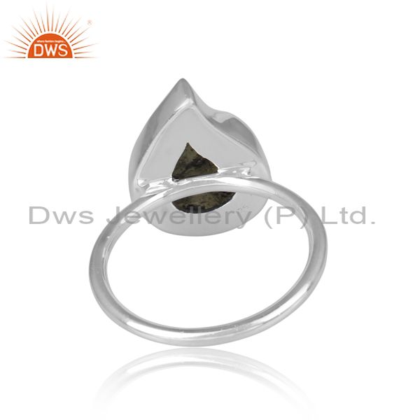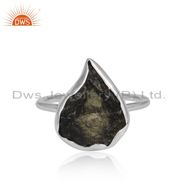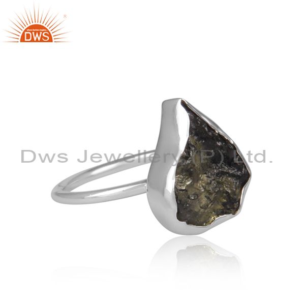 Abstract Cut Moldavite Set Fine Sterling Silver Classic Ring