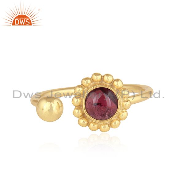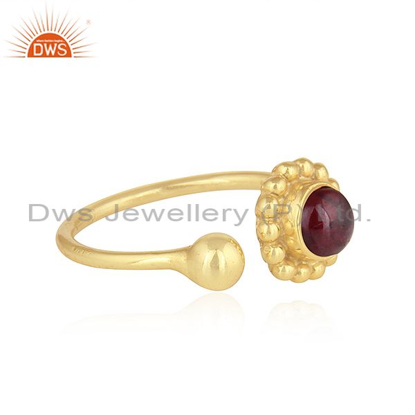 Adjustable 18K Gold Plated 925 Silver Garnet Gemstone Rings Jewelry
