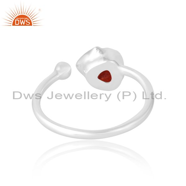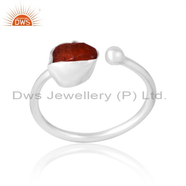 Adjustable And Stylish Dot And Garnet Unshape Silver Ring