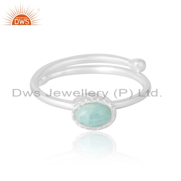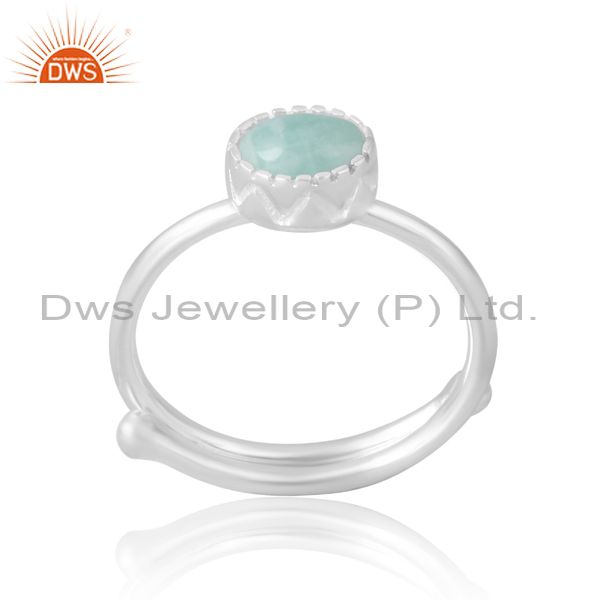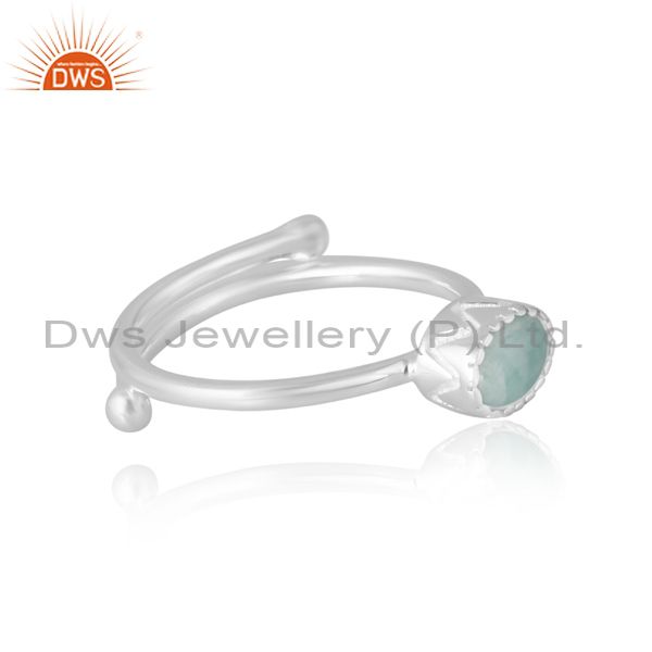 Adjustable Antique Women Round Amazonite Cut Ring In Silver