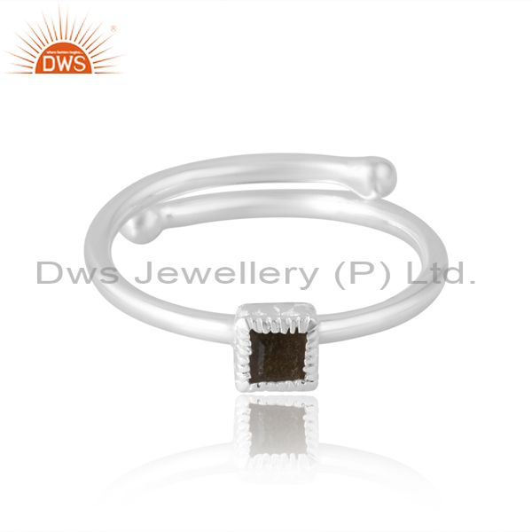 Adjustable Antique Womens Gold Sheen Obsidian Square Ring