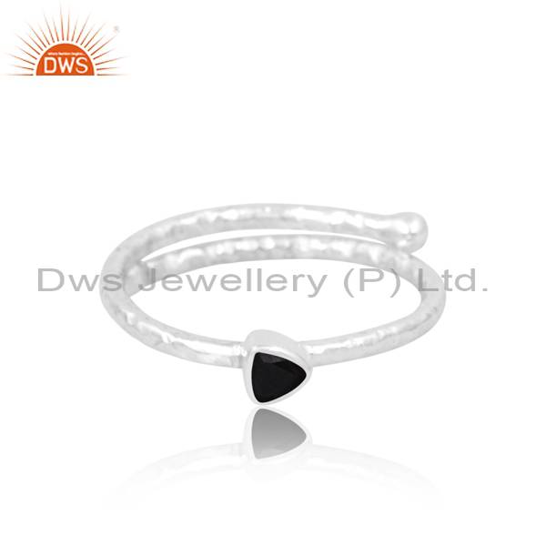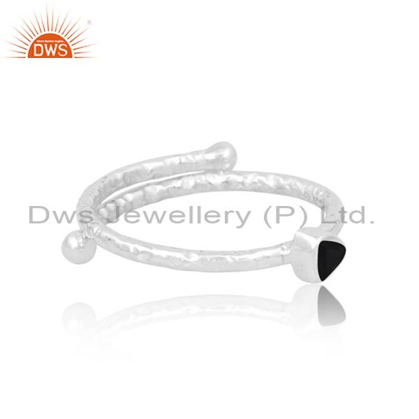 Adjustable Black Spinal Ring For Women - Trillion Cut
