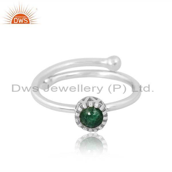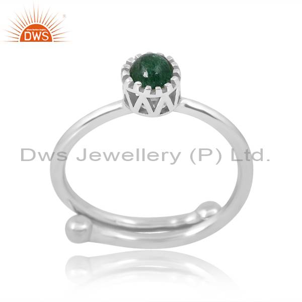 Adjustable Cabushion Round Green Strawberry Quartz Ring