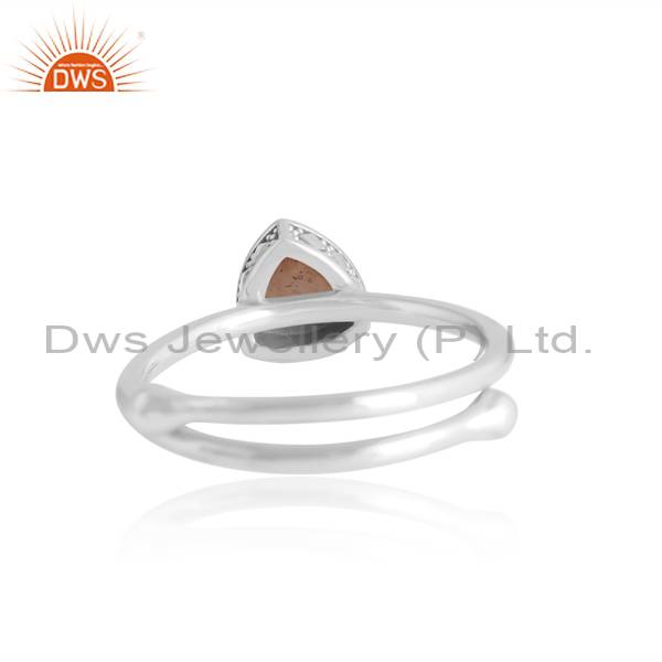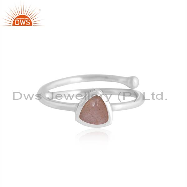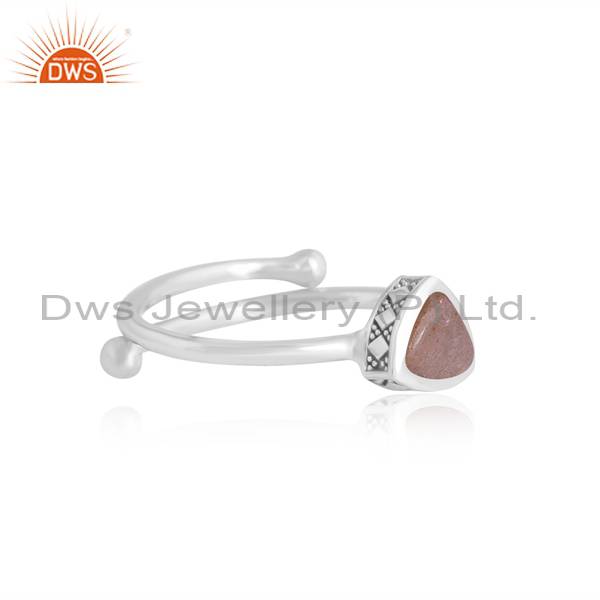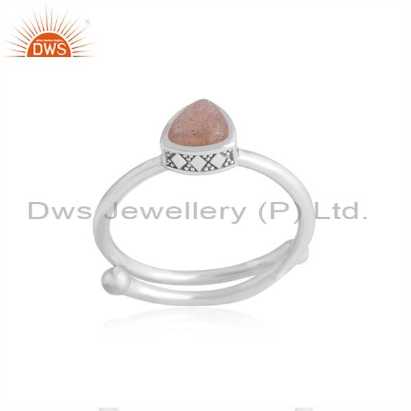 Adjustable Cabushion Shape Trillion Cut Peach Moonstone Ring