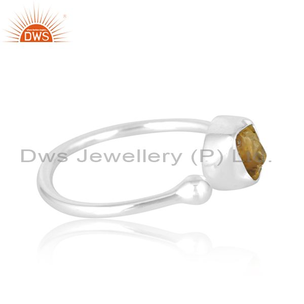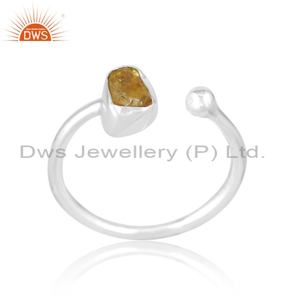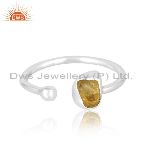 Adjustable Cute Ring In Citrine Rough Silver For Women