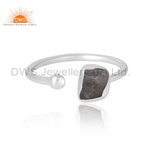 Adjustable Cute Ring In Labradorite Rough Silver Women