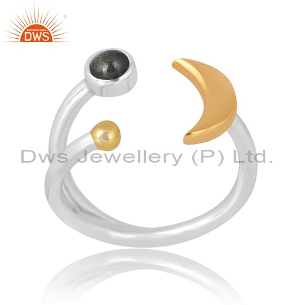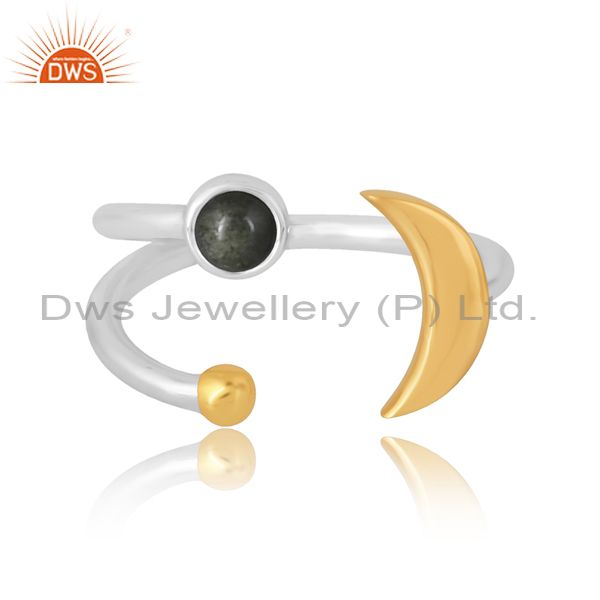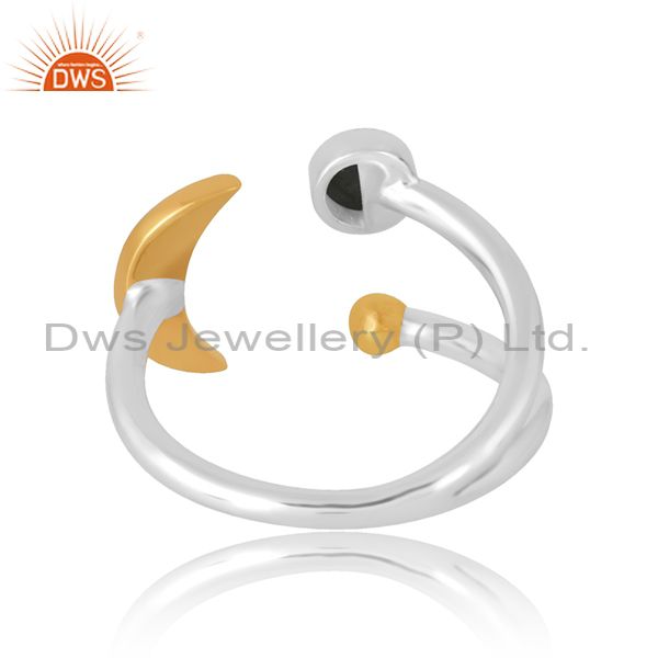 Adjustable Dot, Moon And Obsidian Dot Round Ring Unisex