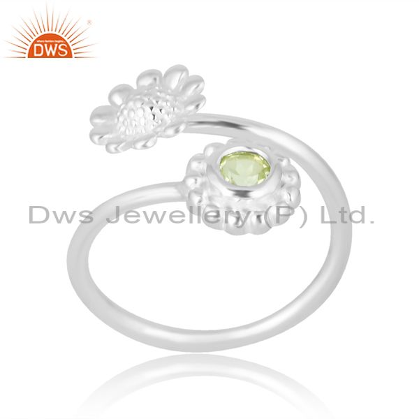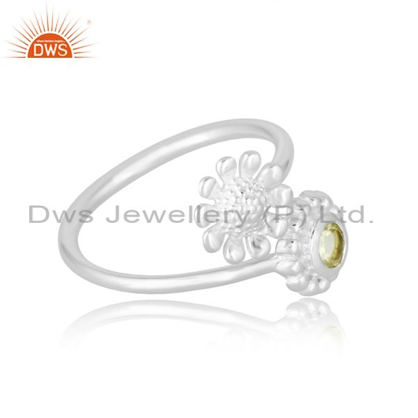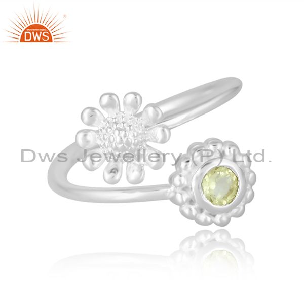 Adjustable Double Layer Floral Ring With Lemon Topaz Cut