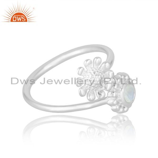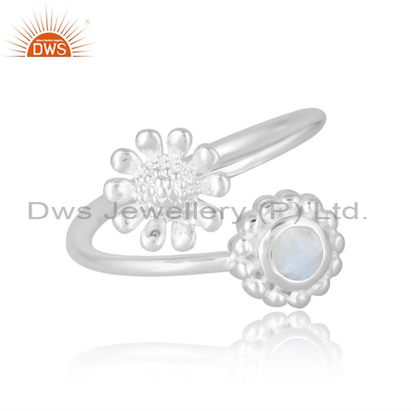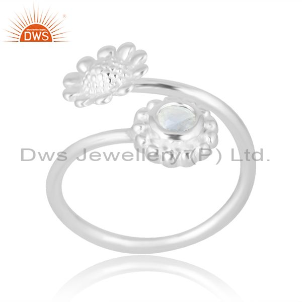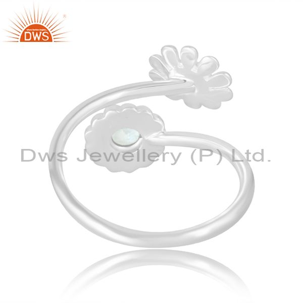 Adjustable Double Layer Floral Ring With Rainbow Moonstone