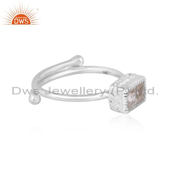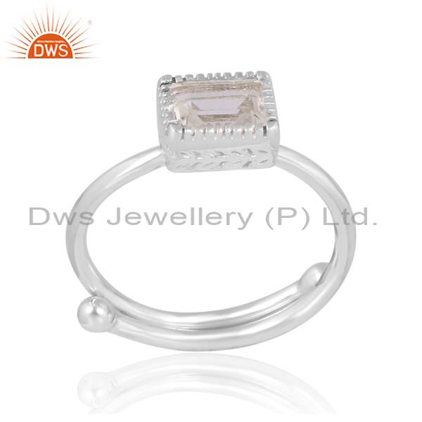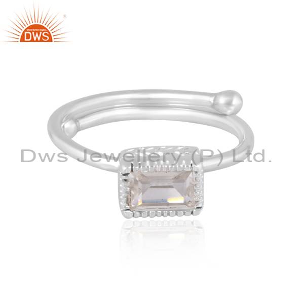 Adjustable Finger Ring With Baguette Shaped Crystal Quartz