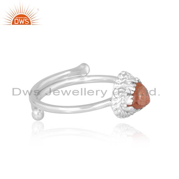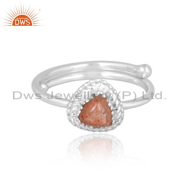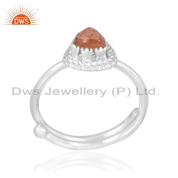 Adjustable Finger Ring With Cabs Trillion Shaped Sunstone