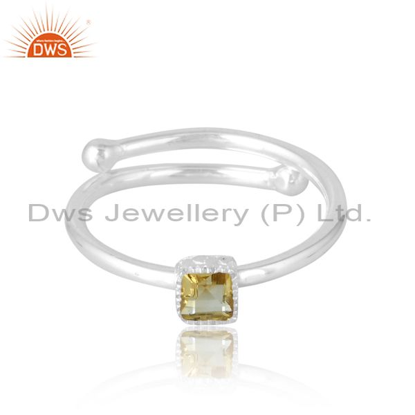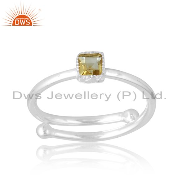 Adjustable Full Band Square Cut Citrine Ring For Women