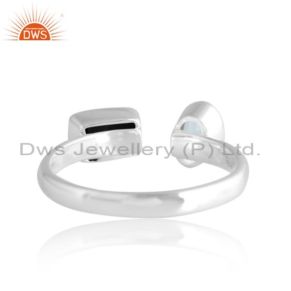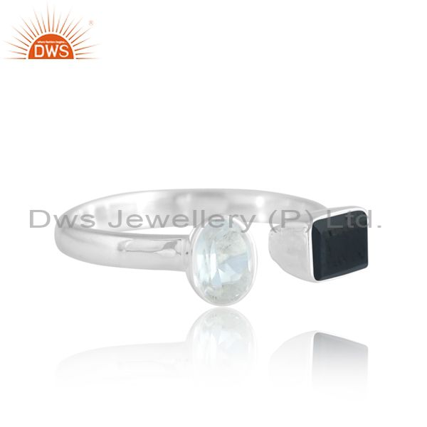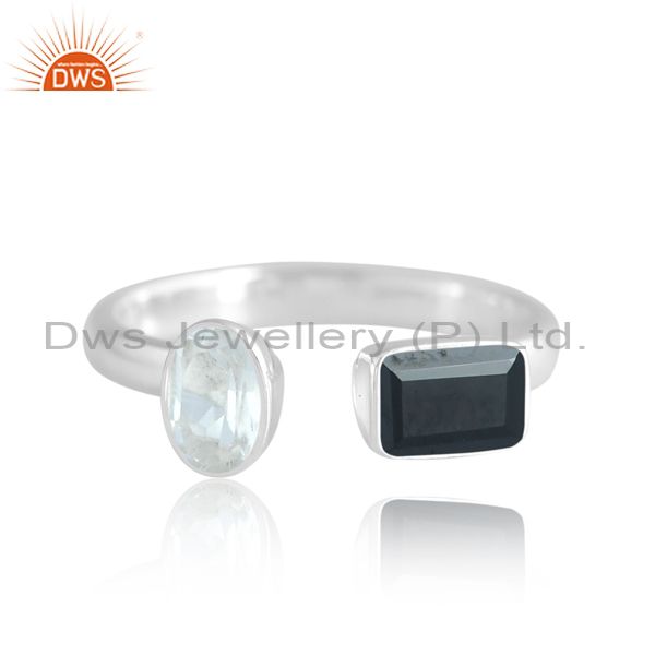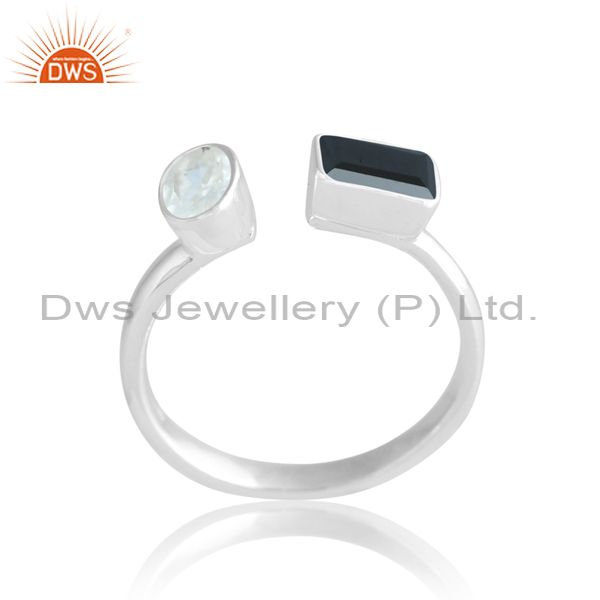 Adjustable Geometrical Ring With Spinal And Quartz Stones