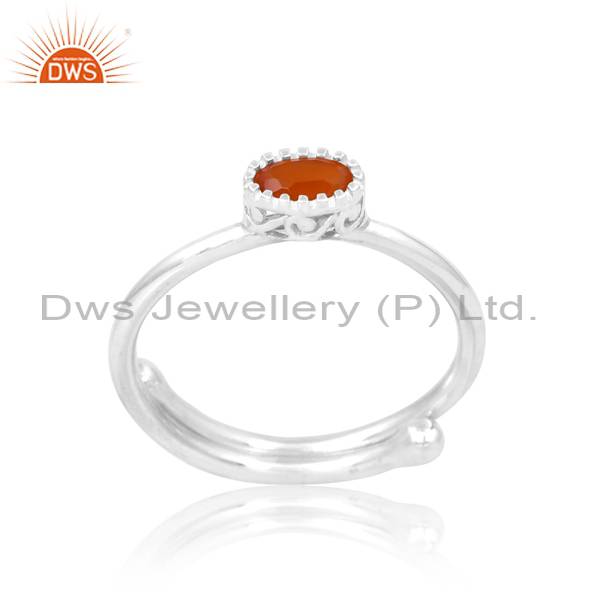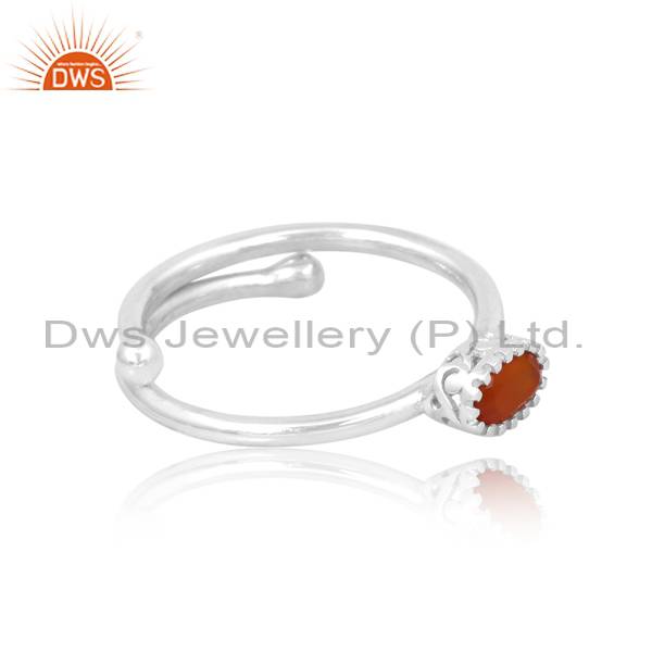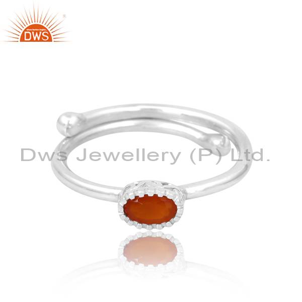 Adjustable Horizontal Oval Cut Carnelian Ring For Women