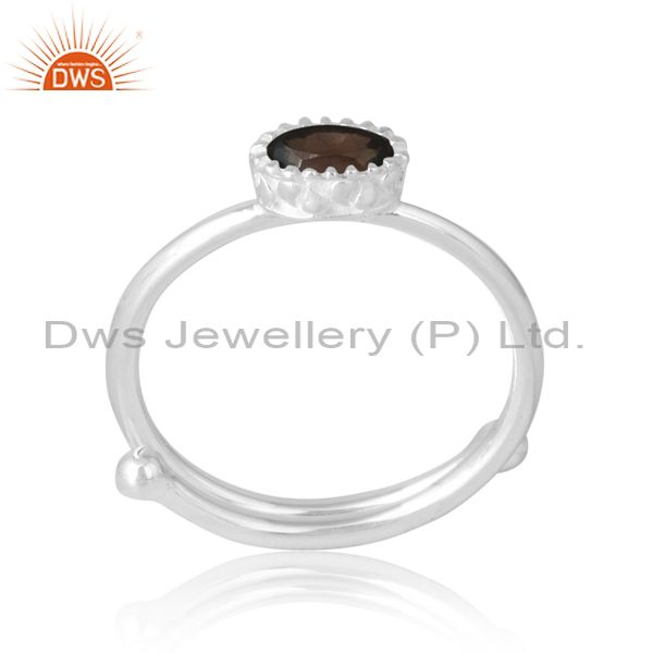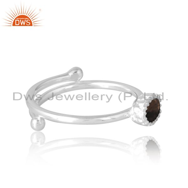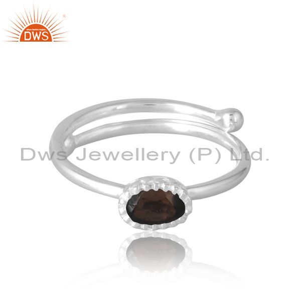 Adjustable Horizontal Oval Smoky Ring For Proposal In Silver