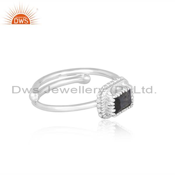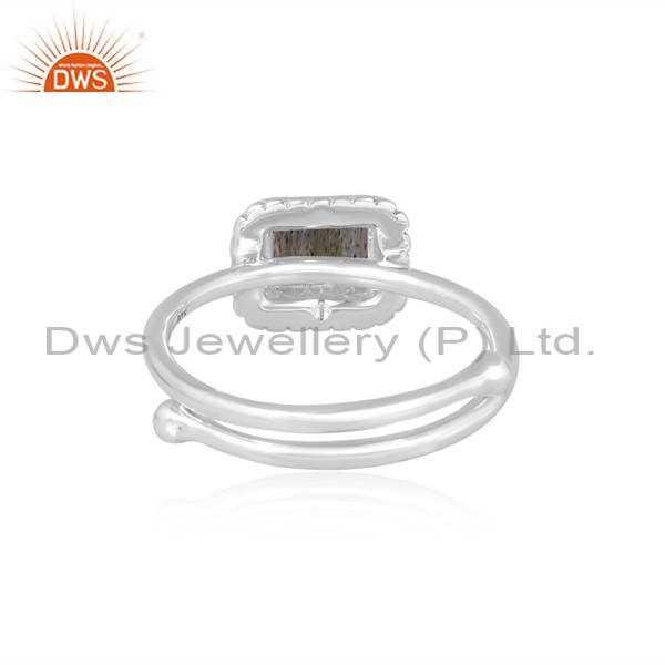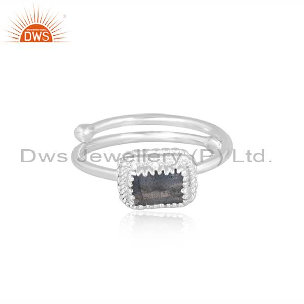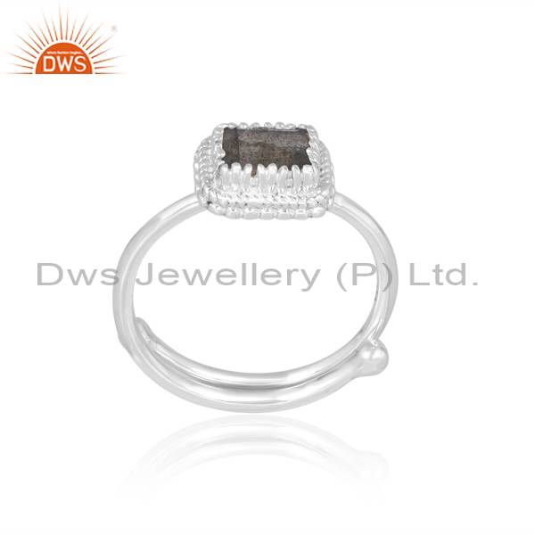 Adjustable Labradorite Ring - Beguette Cut In Silver Metal