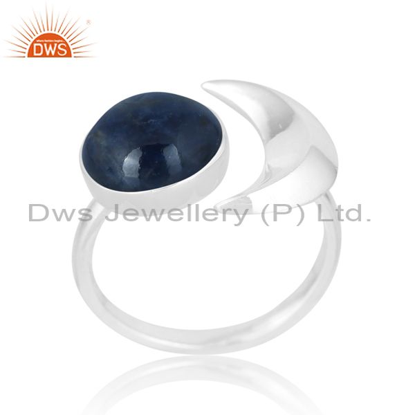 Adjustable Moon And Circle Ring With Sodalite Cabushion
