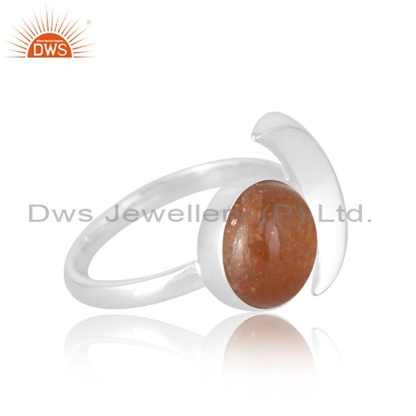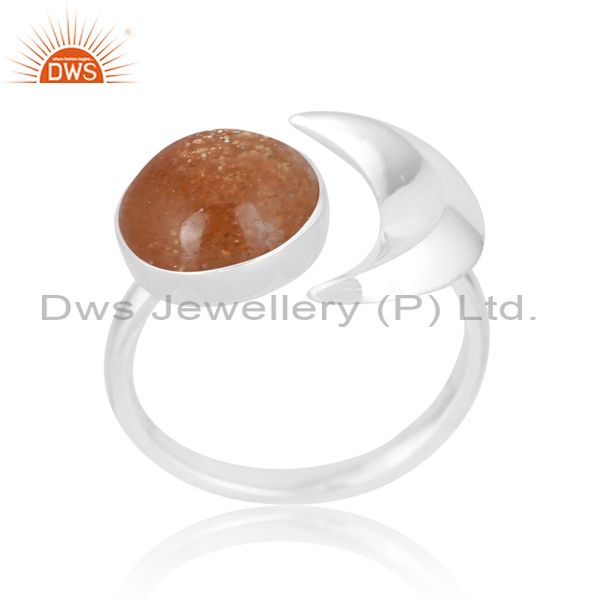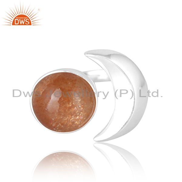 Adjustable Moon And Circle Ring With Sunstone Natural Stone