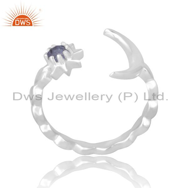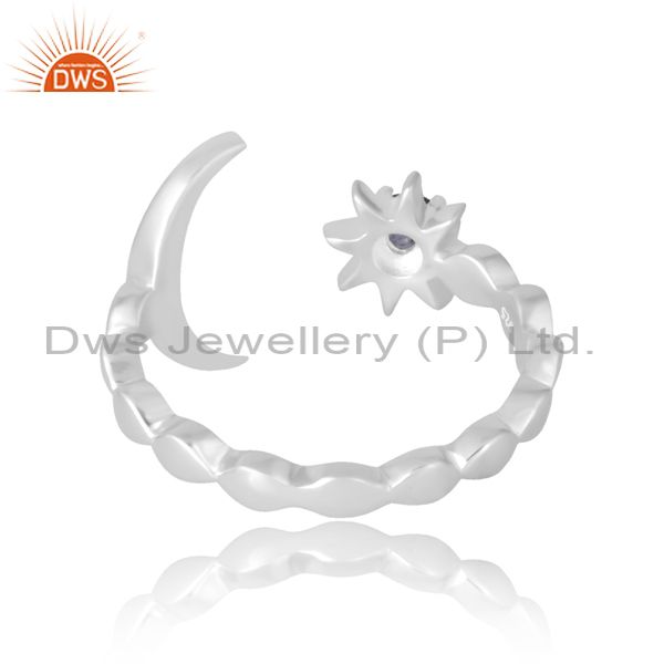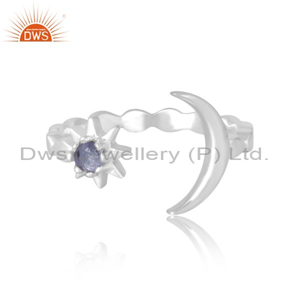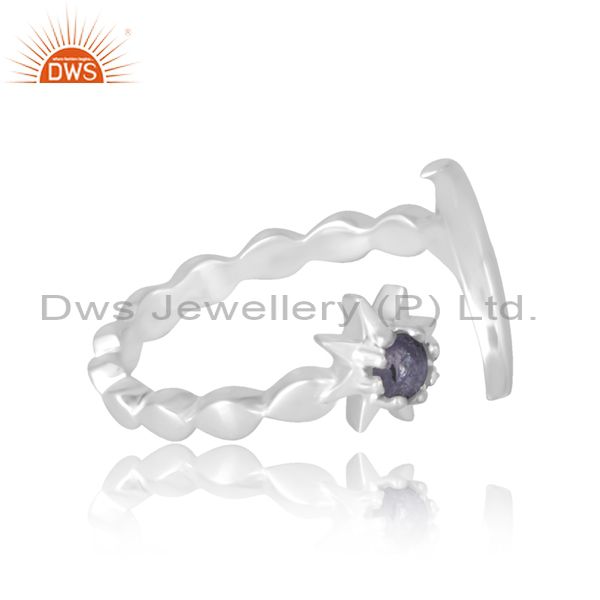 Adjustable Moon And Flower Ring For Women In Tanzanite