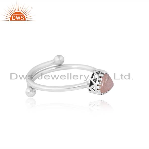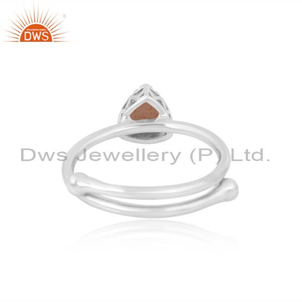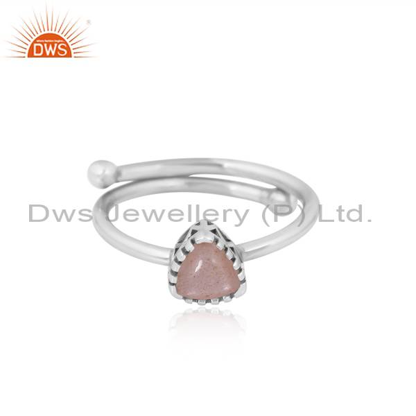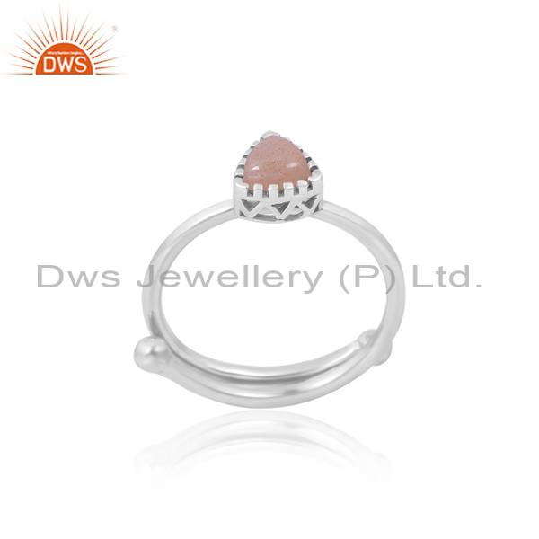 Adjustable Peach Moonstone Trillion Cab Ring For Women