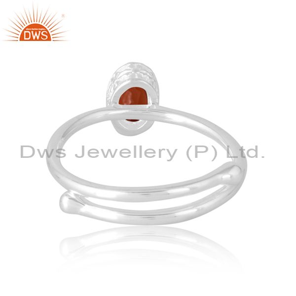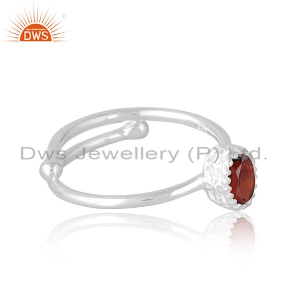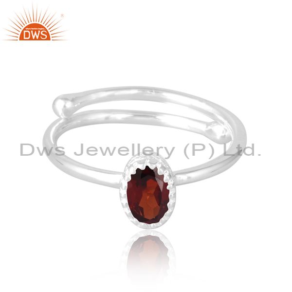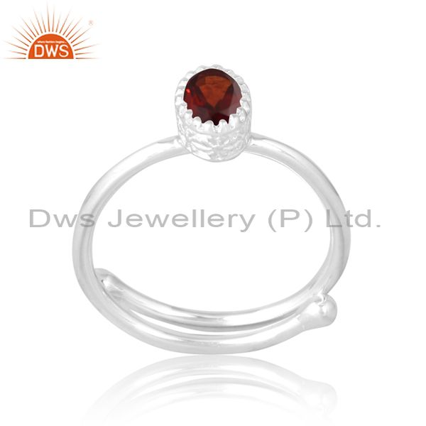 Adjustable Plain Women's Ring With Oval Garnet Stone Design
