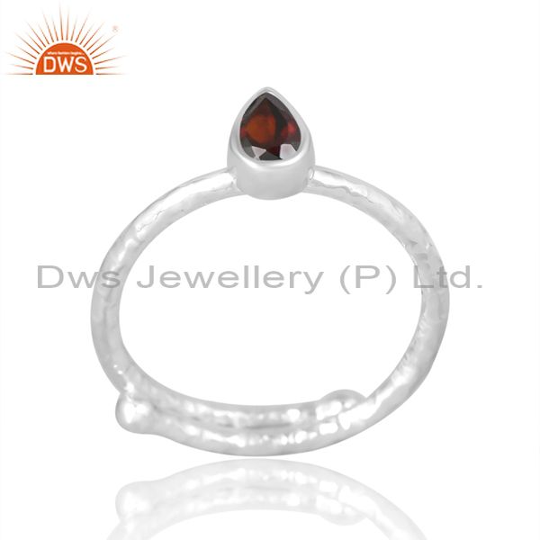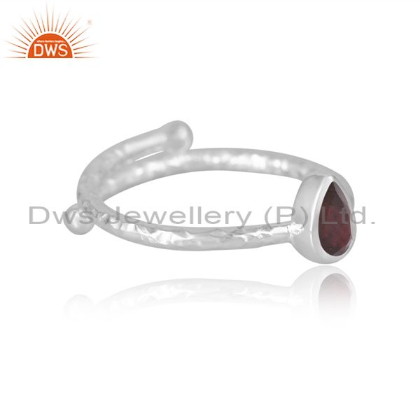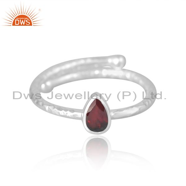 Adjustable Proposal Silver Ring With Garnet Pear Stone