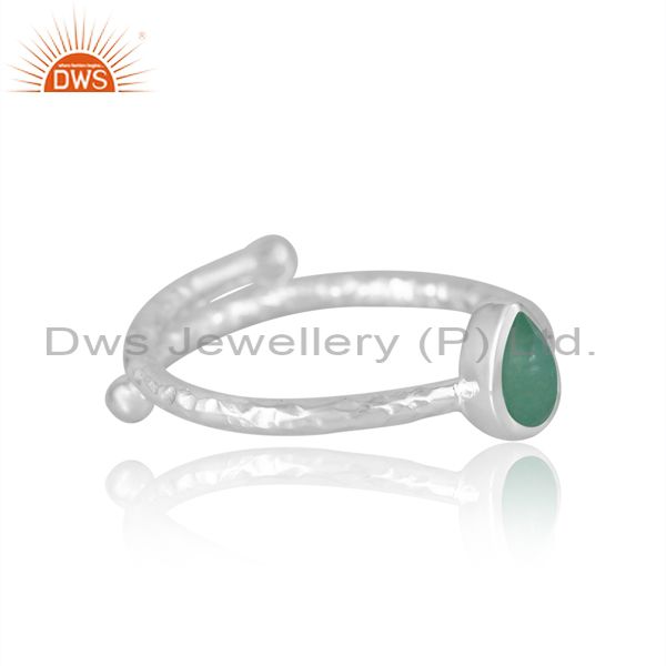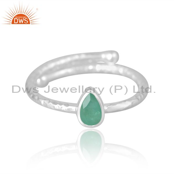 Adjustable Proposal Silver Ring With Pear Emeral Stone