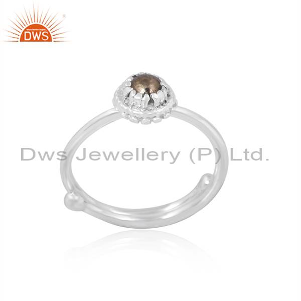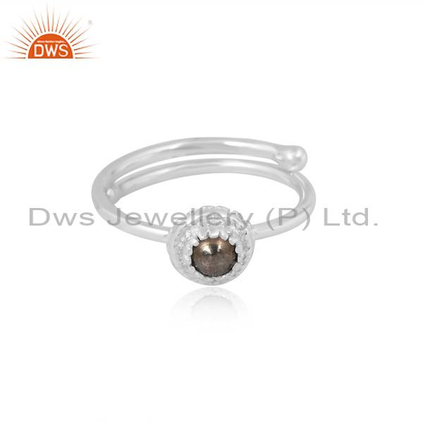 Adjustable Pyrite Cabushion Ring - Unique Round Shape