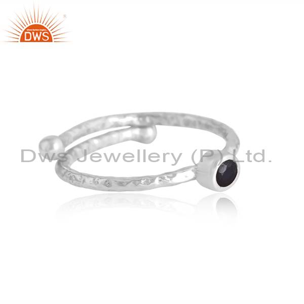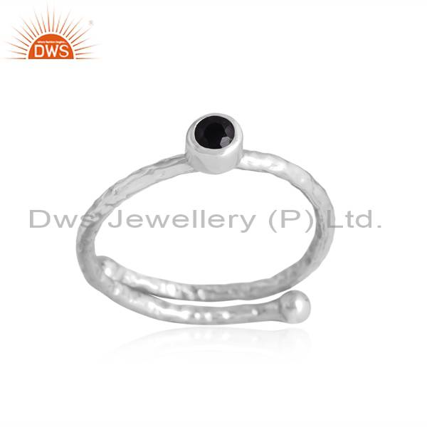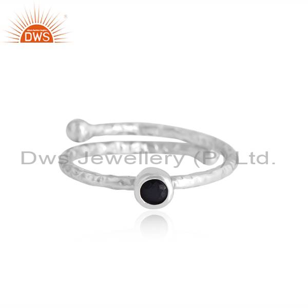 Adjustable Ring With Round Cut Black Spinal Gemstone
