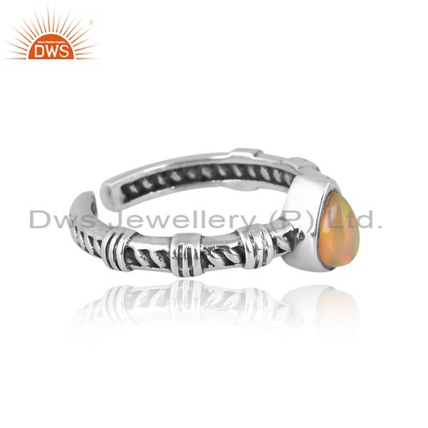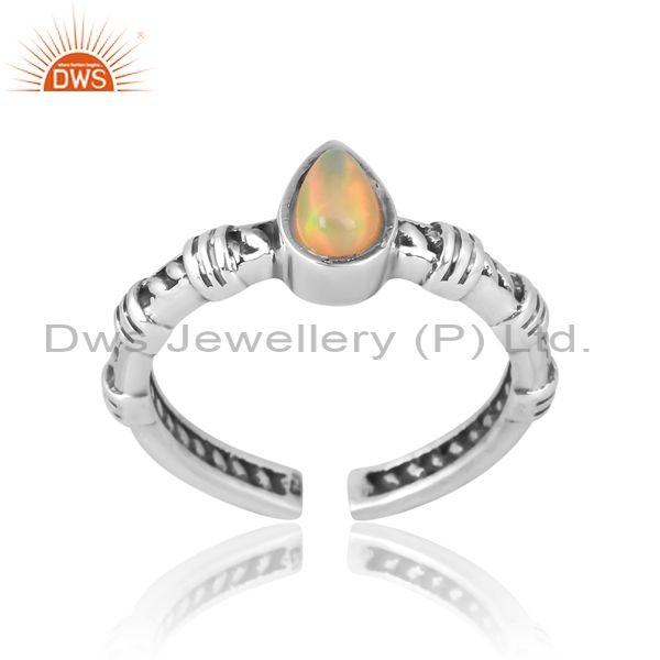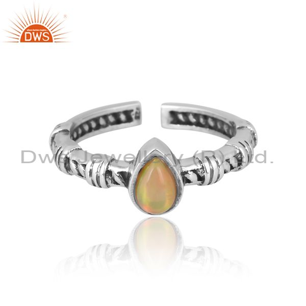 Adjustable Royal Silver Ring With Ethiopian Opal Pear Cut