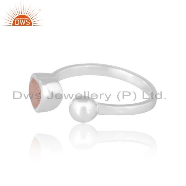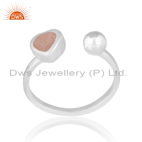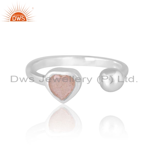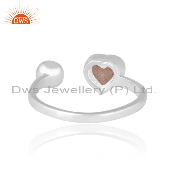 Adjustable Silver Ring With Chocolate Moonstone Heart Cut