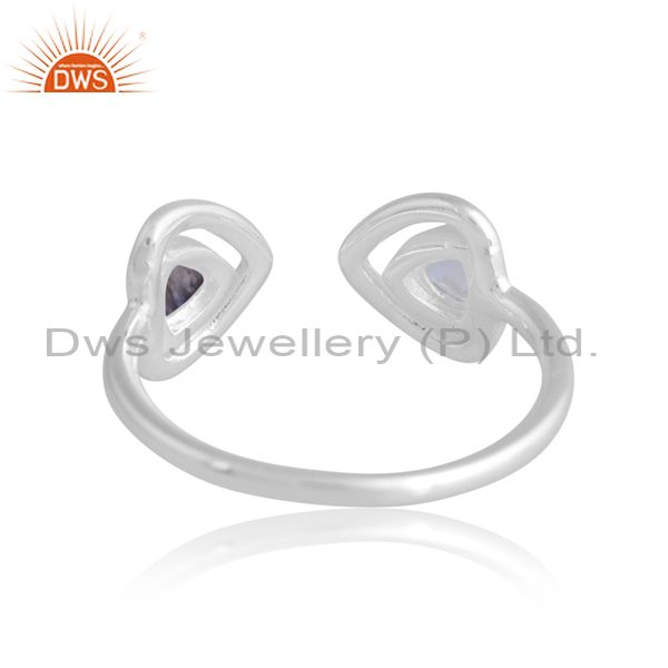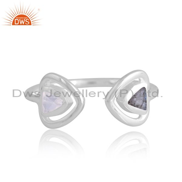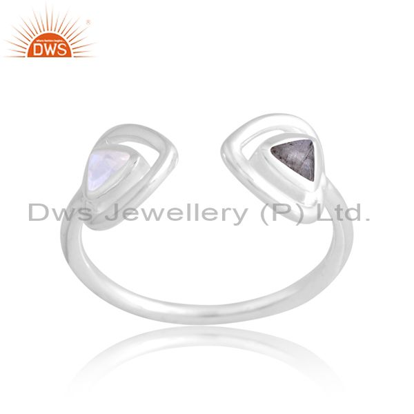 Adjustable Silver Ring With Labradorite, Rainbow Moonstone