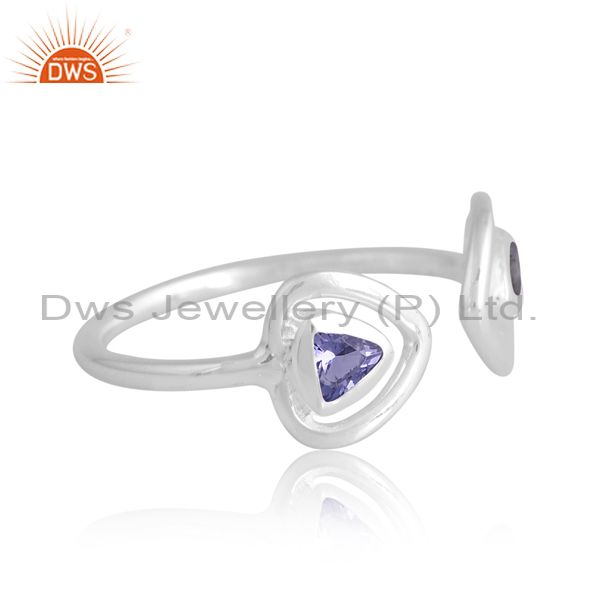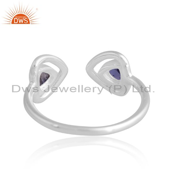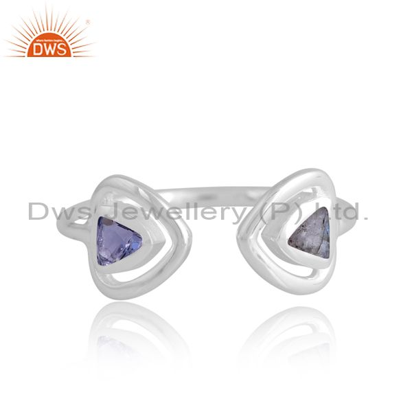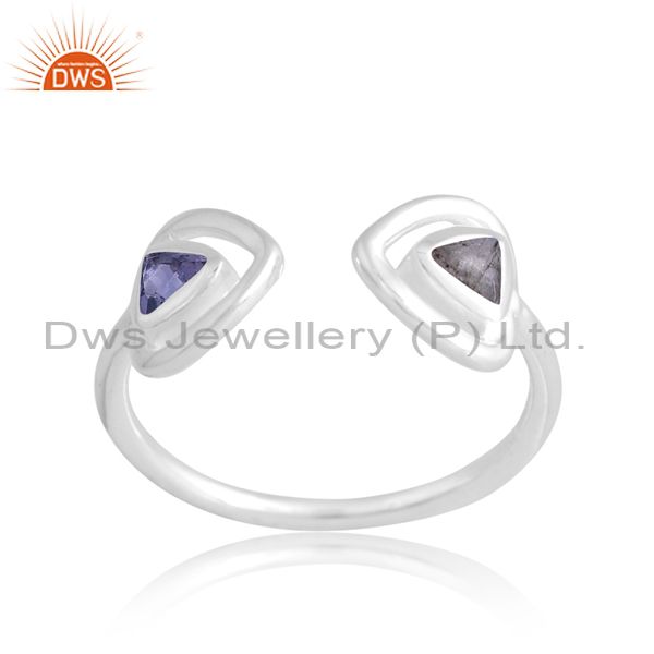 Adjustable Silver White Ring With Iolite And Labrodorite