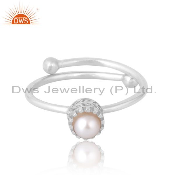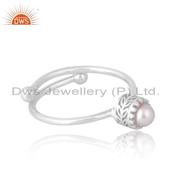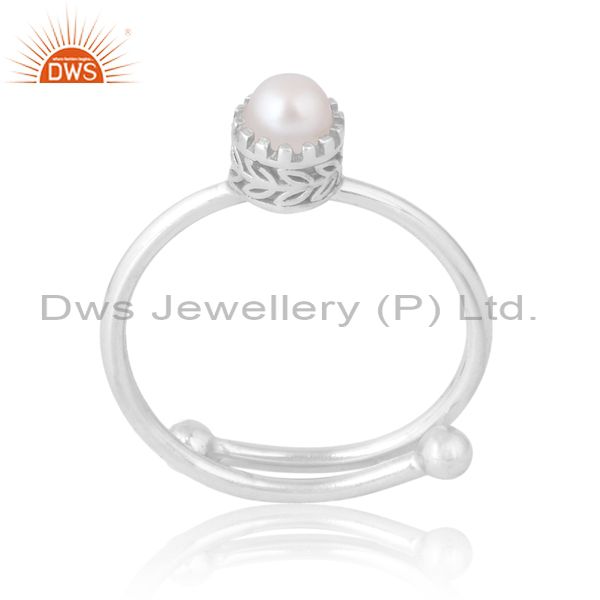 Adjustable Simple Silver Ring With Pearl Center For Women