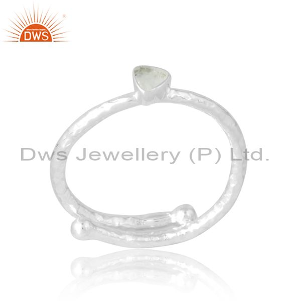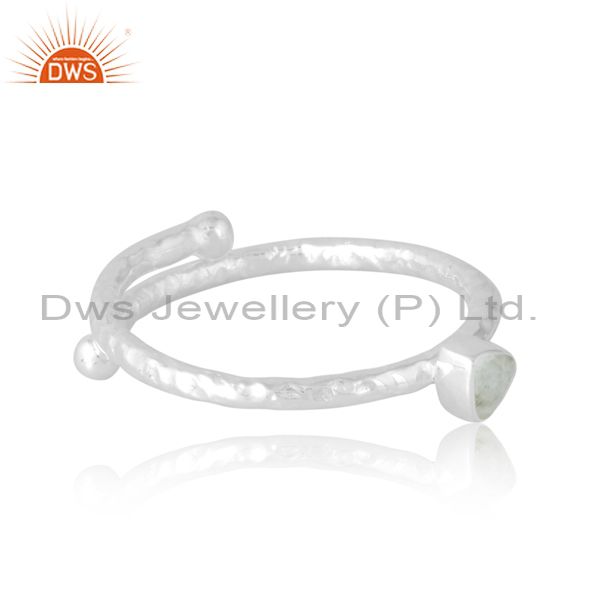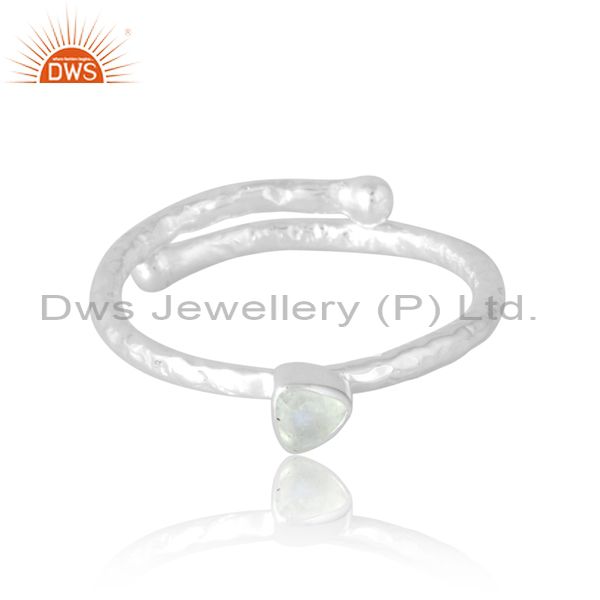 Adjustable Simple Silver Ring With Rainbow Moonstone Middle