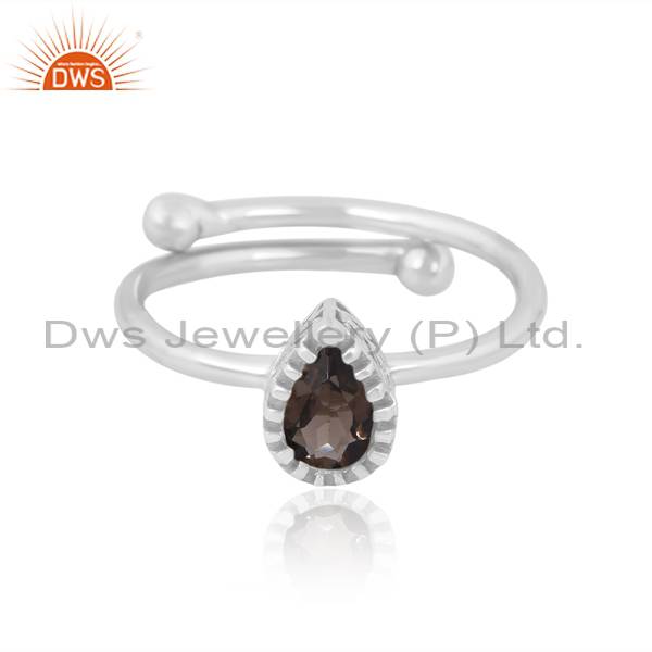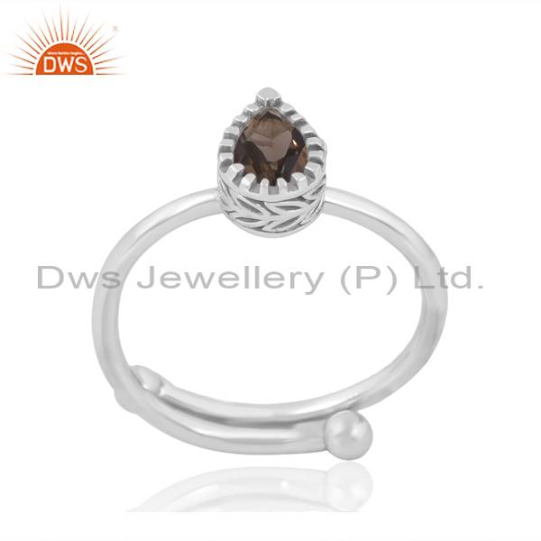 Adjustable Smoky Pear Shape Ring - Elegant & Versatile