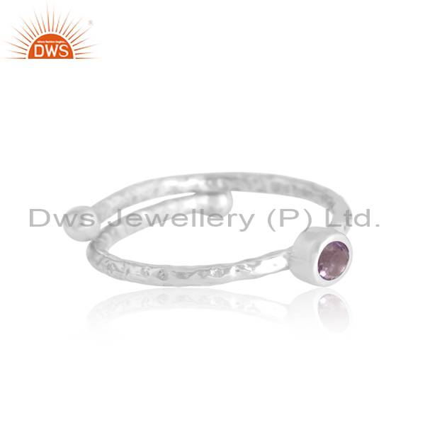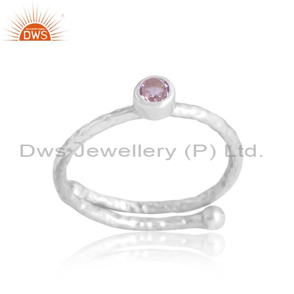 Adjustable Sterling Silver Ring With Pink Amethyst For Girls