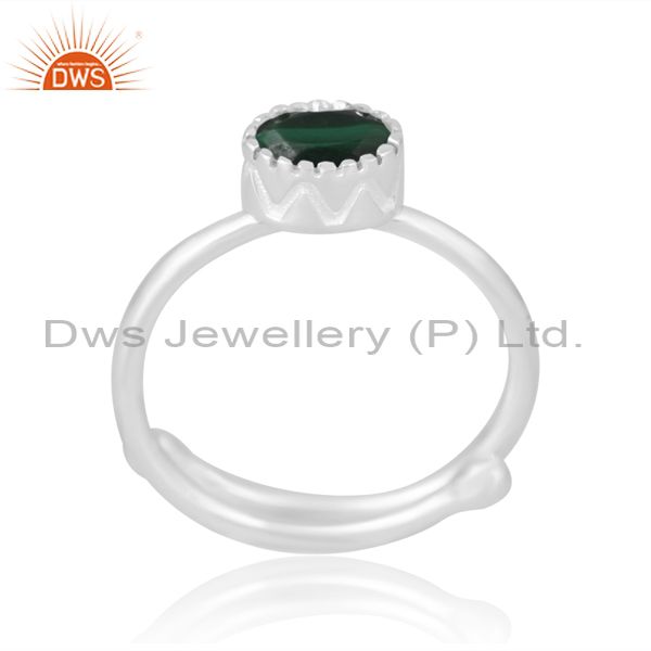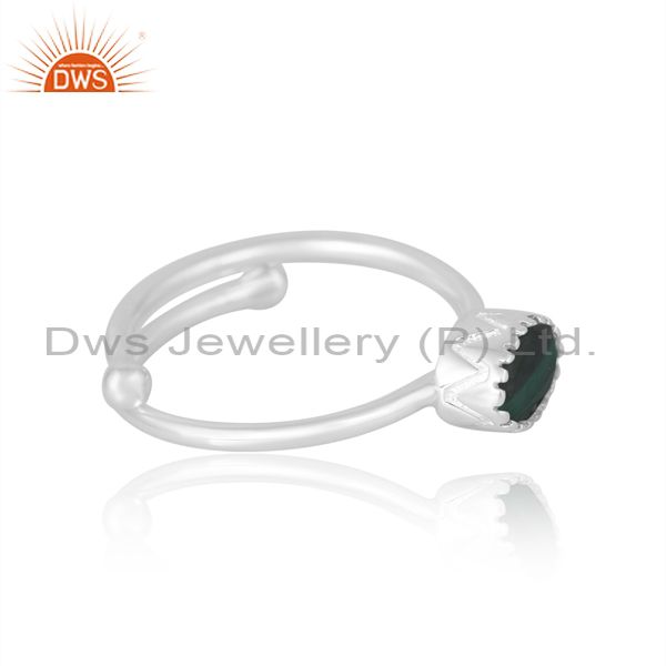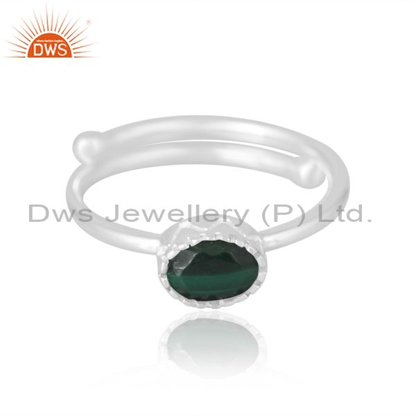 Adjustable Unique Engagement Silver Ring With Oval Malachite