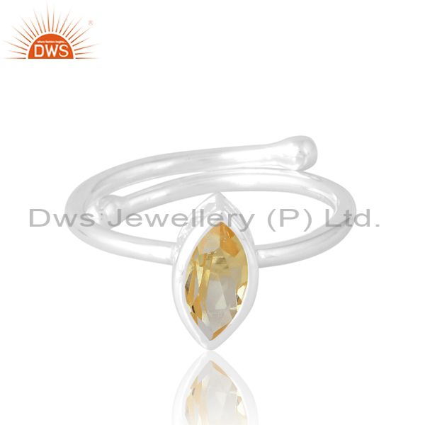 Adjustable Unisex Marquise Citrine Proposal Band Silver
