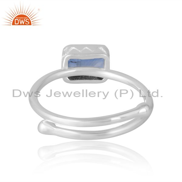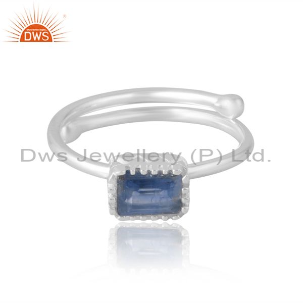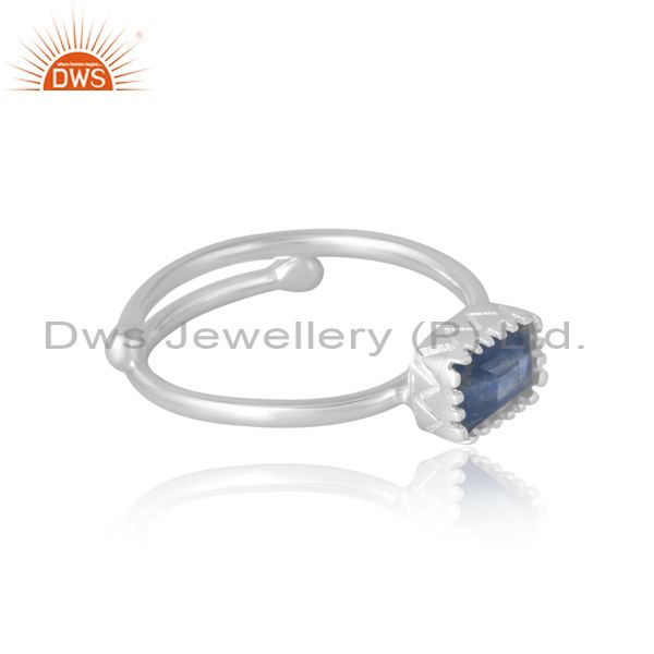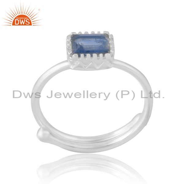Adjustable Unisex Square Kyanite Beguette Cut Ring In Silver